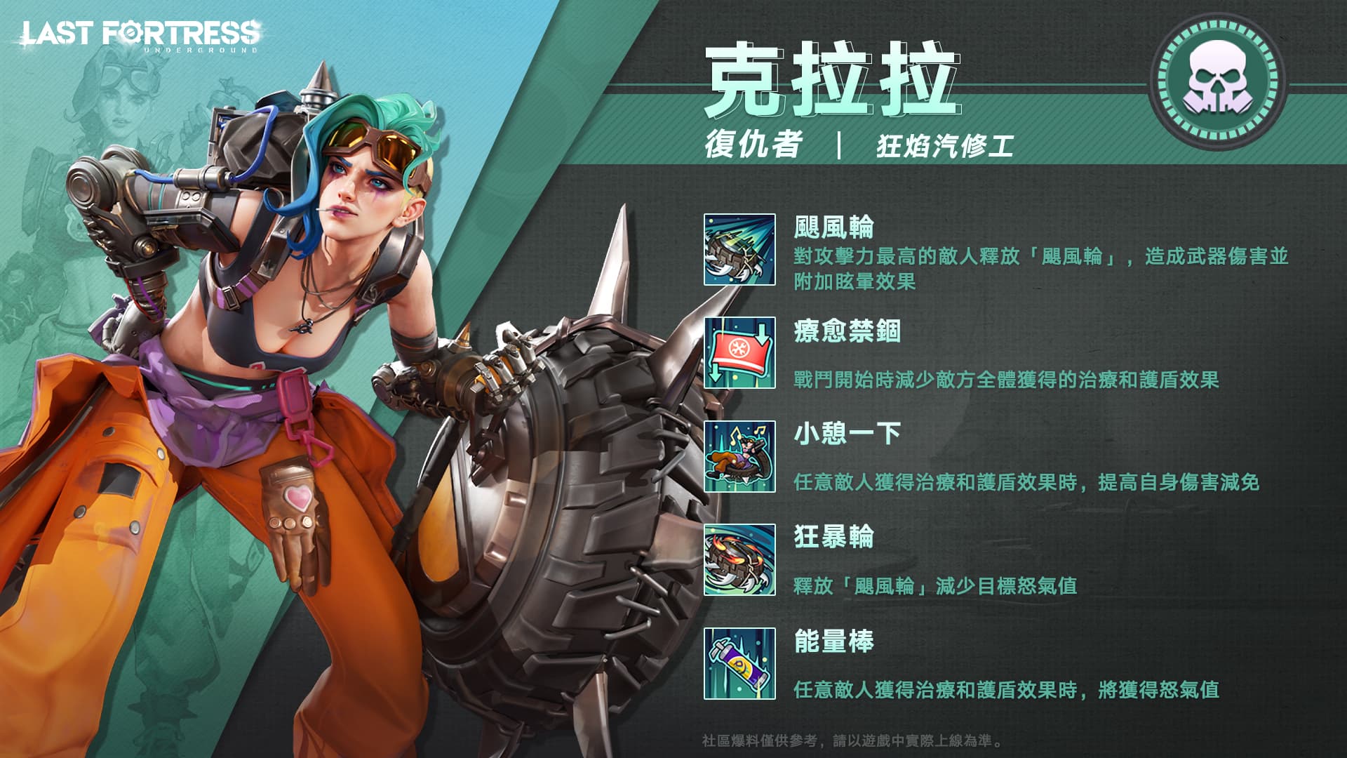 Berserk Wheel: Reduces the target's rage value when releasing " Hurricane Tire".